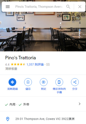 ↑ ↓ 找了一家沙灘附近的餐廳Pino’s Trattoria吃晚餐,這年頭找餐廳誰不靠GOOLE MAP的?