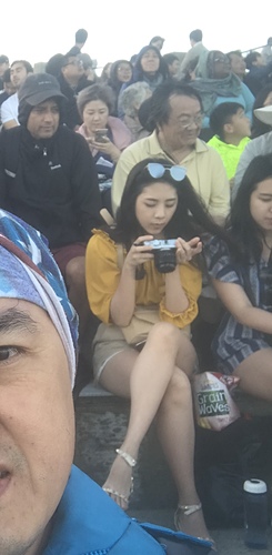 ↑ 當然不要等到時間到才來,會沒好位子坐的。一兩個小時前就要來卡位了,很冷、風很大,就算是夏天也要帶外套