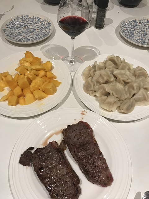 ↑ 附近有家中國超市,買冷凍水餃來煮,佐牛排(牛排比水餃便宜的意思)