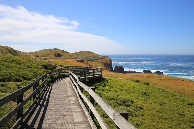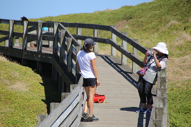 ↑↓ 這裡沿著海岸設置了木頭人行棧道,行走時可以注意棧道下有可能躲著沒有出海或企鵝的幼鳥