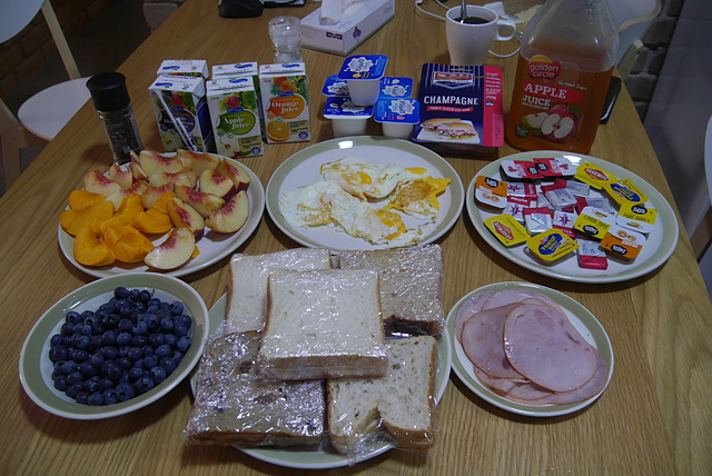 ↑ 旅館提供的自煮早餐(房東放在冰箱請自行處理)水果是自備的