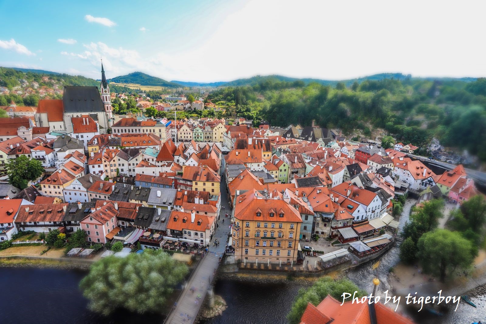 俯瞰整個CK小鎮,紅色彩街屋櫛比鱗次,古意盎然的中古世紀建築處處可見,輕鬆就可成為一幅美麗畫面