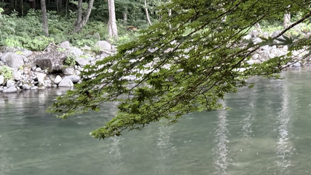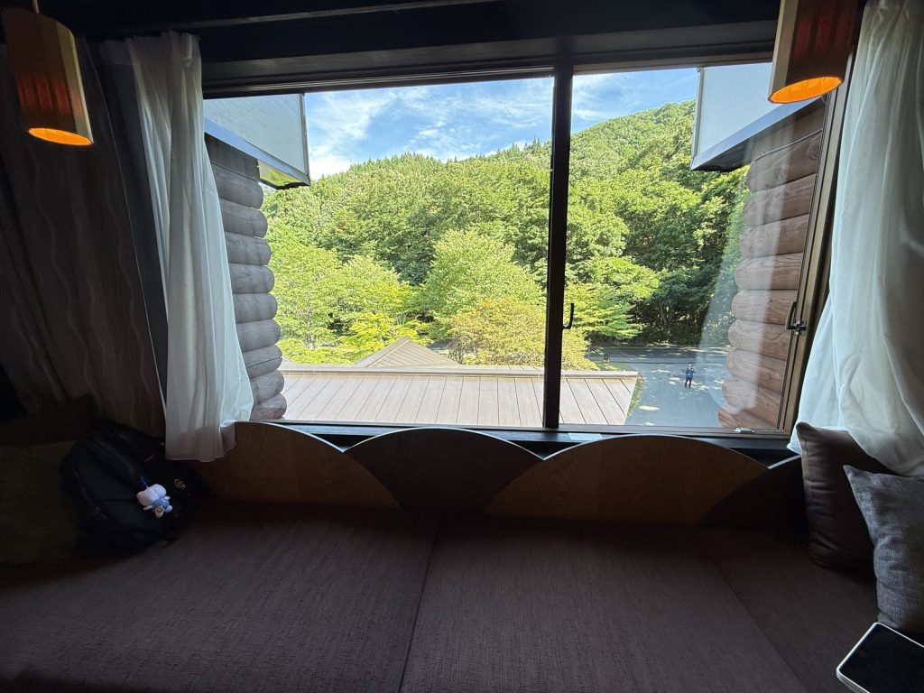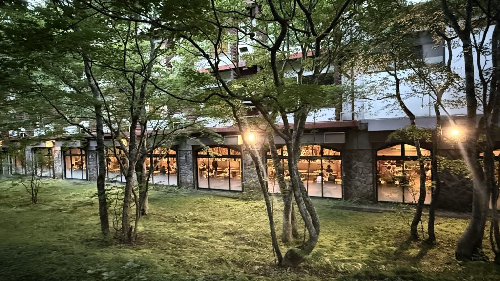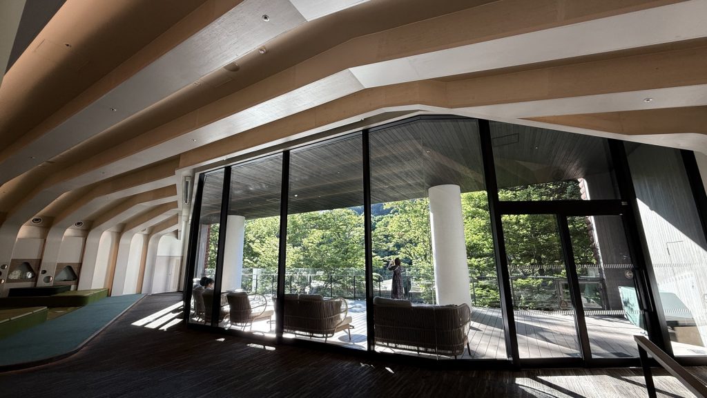 飯店依著溪水而建,無論在客房、餐廳或溫泉,