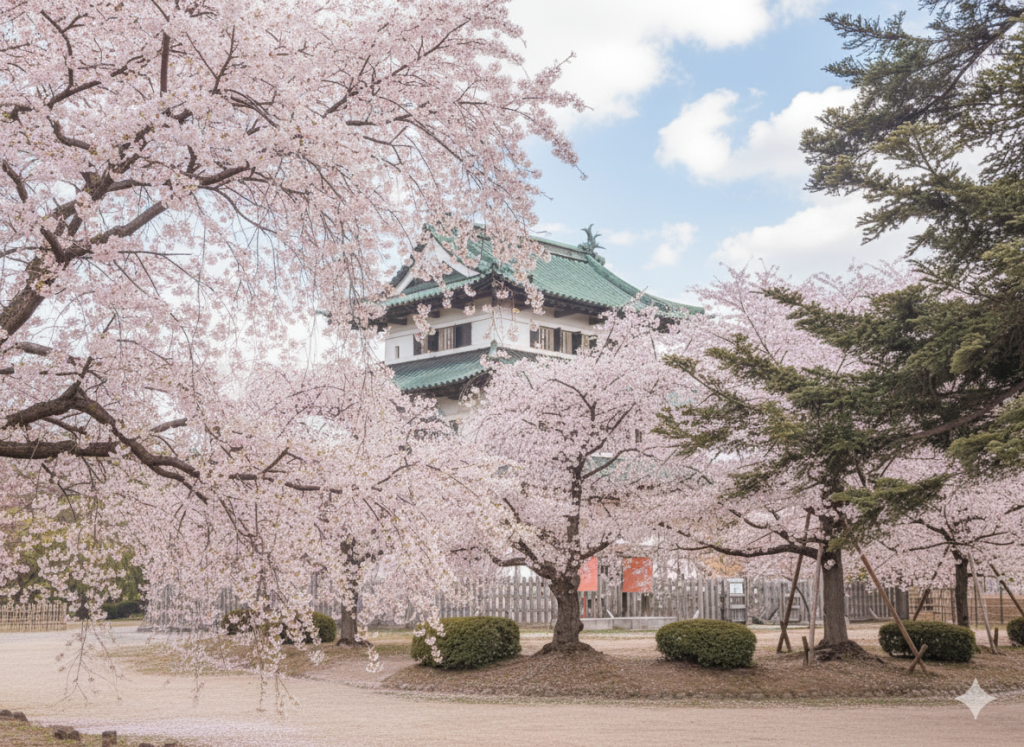 弘前城最著名的景觀是春季的「弘前櫻花祭」。