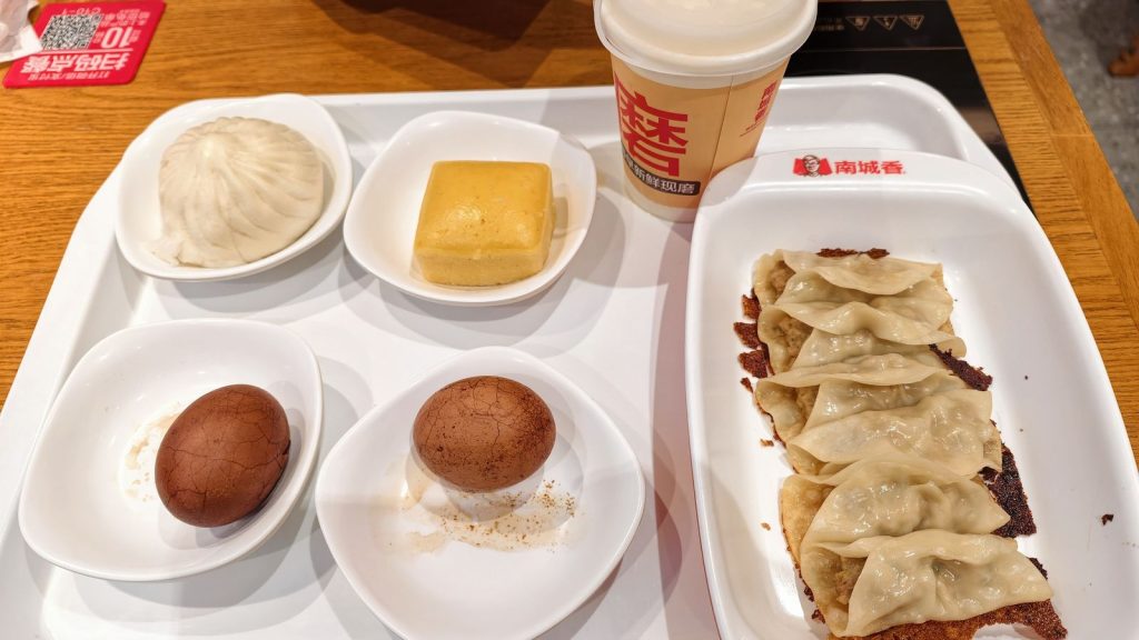 ↑↓ 早餐不在飯店吃,跑去對面的南城香,是北京非常有名的平價中式快餐連鎖店,被許多北京人稱為「老百姓的食堂」或「性價比之王」。它起源於北京南城,主打「現炒家常菜+燒餅夾肉+豆漿」組合,店內乾淨明亮、翻桌快、營業時間長,多數門店從清晨到深夜。