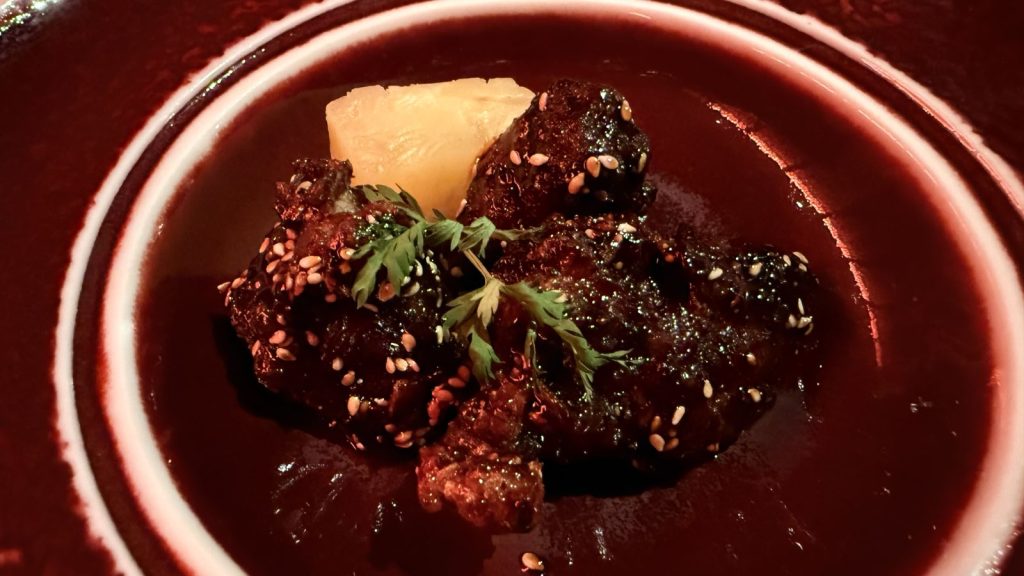 ↑ 羊肉:紅椒堅果羊小排,炸得酥脆口感