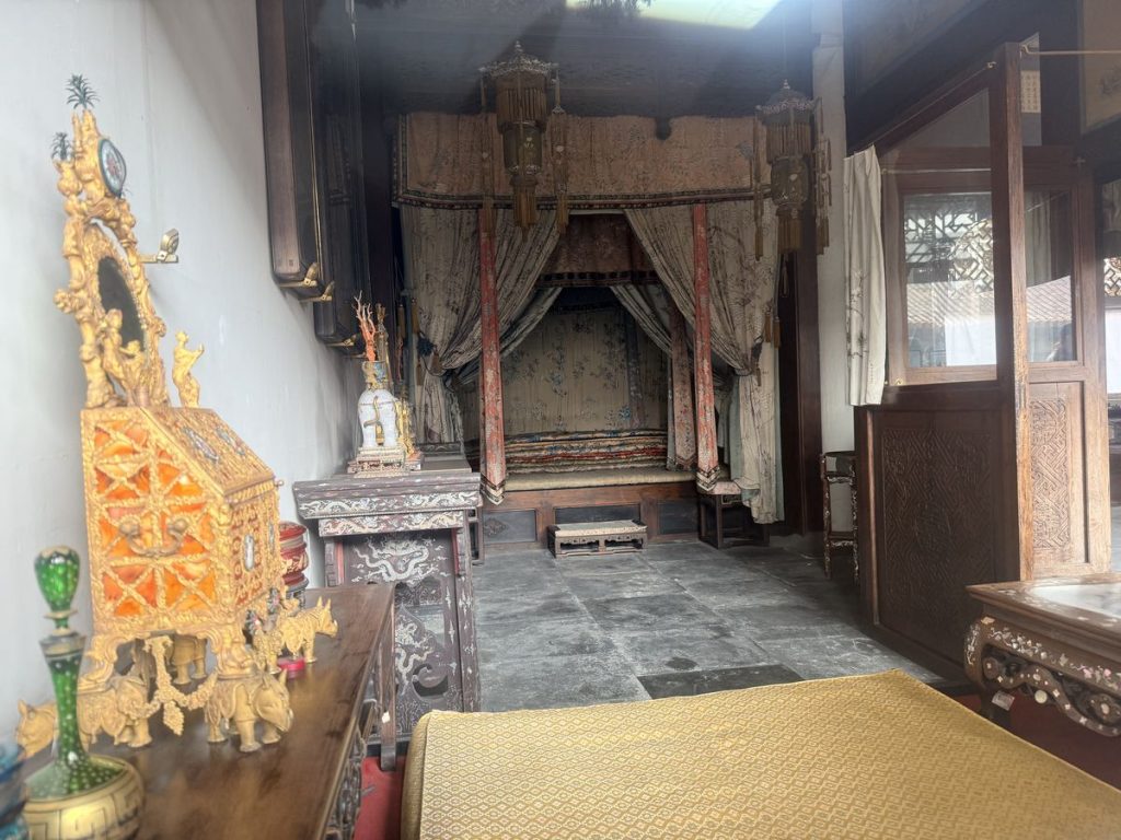 ↑ 慈寧宮東暖閣的慈禧太后寢室陳設復原區,慈禧太后在同治、光緒年間掌權後,雖然主要居於頤和園與中南海,但仍常在故宮慈寧宮駐留