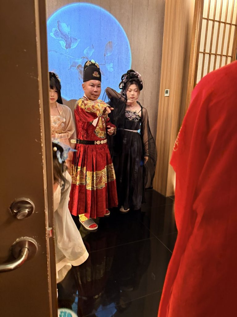 ↑ 這餐廳的名字叫:宮宴-須盡歡,這場是以唐朝宮御宴為靈感打造的主題用餐體驗,由專業演員、宮廷服飾與御膳復刻菜組成,在布景還原的「宮廷場景」裡,宛如穿越進大唐盛世的夜宴之中