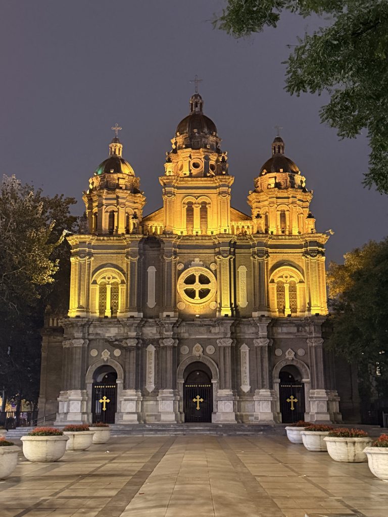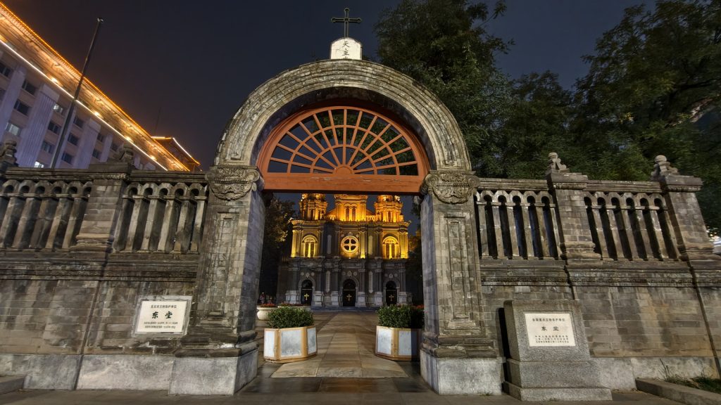 王府井天主堂,正名聖若瑟堂,俗稱東堂、八面槽教堂,隸屬天主教北京教區,是耶穌會士在北京城區繼宣武門天主堂之後興建的第二所教堂。王府井天主堂現存的建築是座三層羅馬式建築,融入了許多中國傳統建築元素。