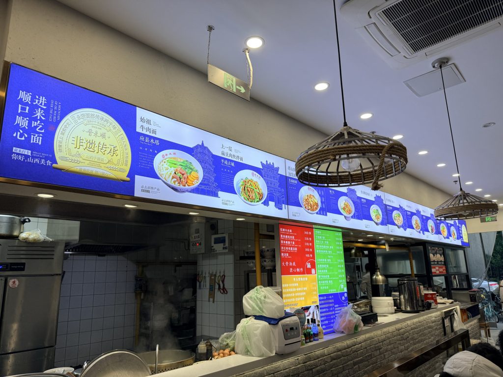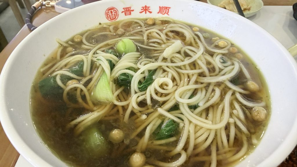 ↑ ↓ 早餐本來要去吃麥當勞,但居然還沒開門營業,直接來到隔壁的「晉來順手擀麵」,這是一家山西風味的手擀麵館,也有賣早餐
