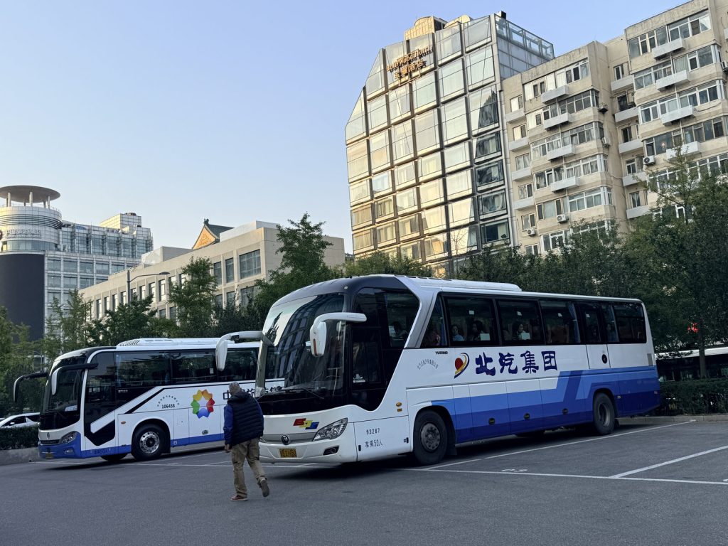 ↑ 今天參加了TRIP上的「慕田峪長城」一日遊,集合地點就在飯店旁的停車場。一半以上是外國人,領隊在車上講解時不停地中英語交替切換使用,有點忙