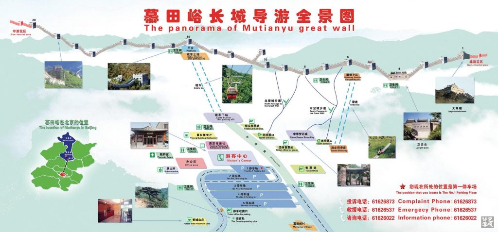 - 上午:慕田峪長城(索道上→ 滑道下→ 纜車上 → 健行 → 纜車下 )