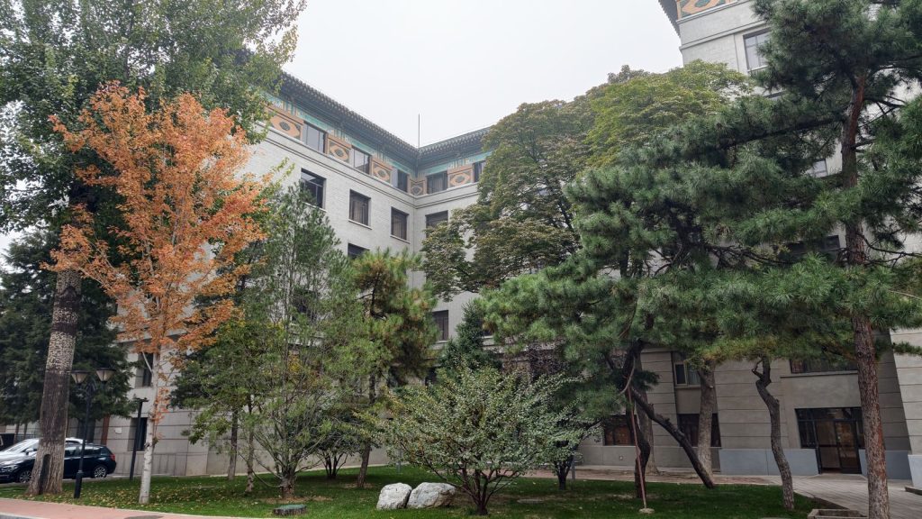 園區佔地非常大,由多棟低層樓的獨立樓座組成,建築融合了當年的蘇式莊嚴感與中式庭院的寧靜。這裡不像一般飯店那樣壯麗空曠,反而像是走進了一座帶著歷史味道的學術園區。友誼賓館不像一般酒店那樣展示現代感,它安靜、綠意滿滿,像一座會呼吸的老校園。走在樹影裡,會突然忘記自己在北京,彷彿只是住進了一段舊時代留下的回憶。