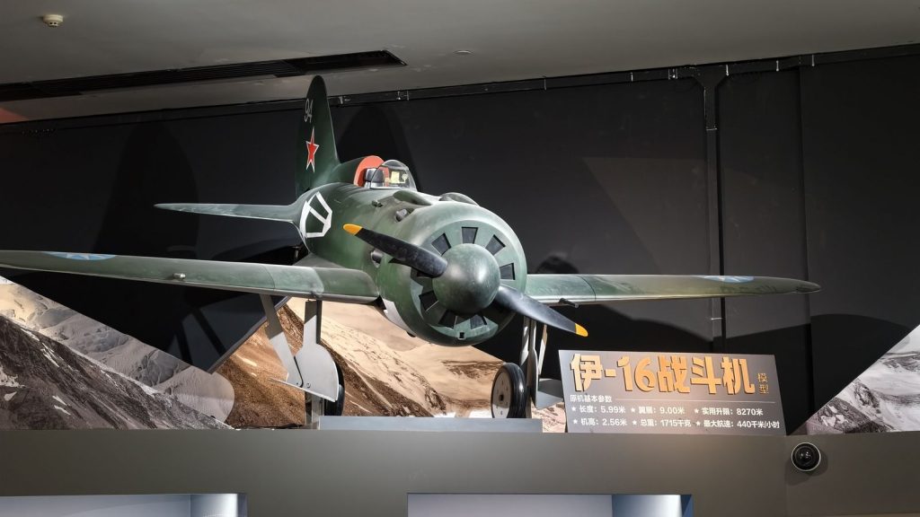 ↑ 伊-16戰鬥機,是蘇聯在1930年代初期開發的戰鬥機,是全世界第一款服役備有可收式起落架之下單翼懸臂式戰鬥機。在抗日時期,蘇聯援助中國不少這型的飛機