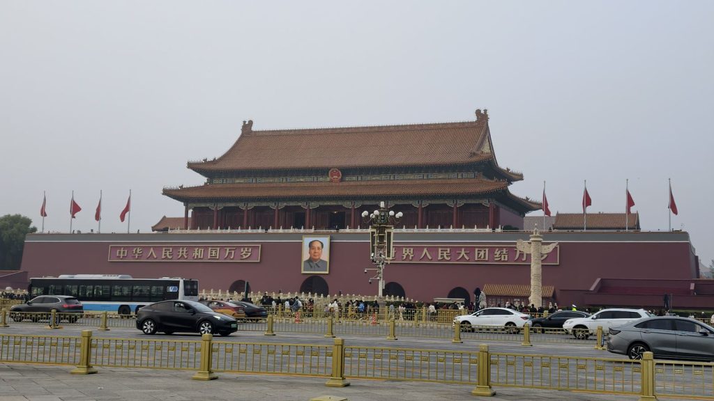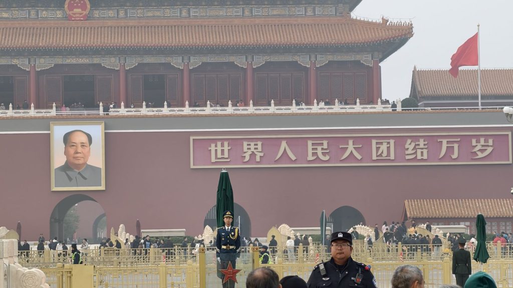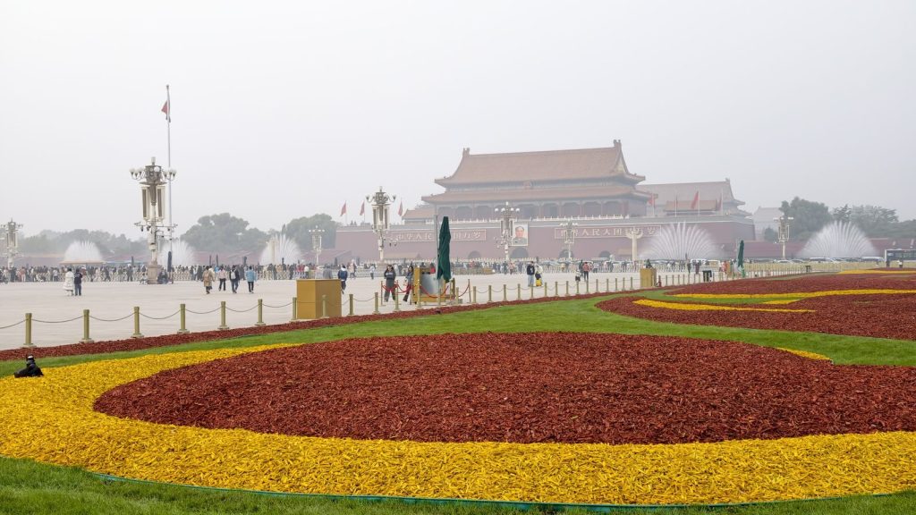 ↑ 天安門上最醒目的巨幅毛澤東像,據說每年都會重新繪製,象徵建國敘事的延續