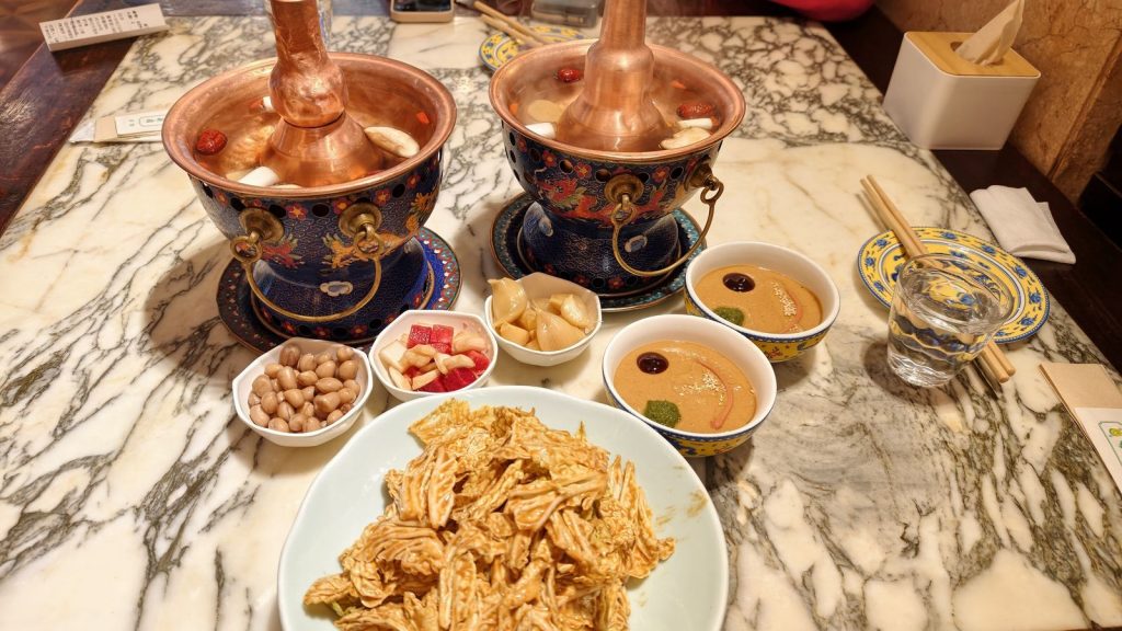 晚餐來吃南門涮肉,是老北京人認證的道地銅鍋羊肉,在眾多涮肉店裡,南門涮肉是備受北京人喜愛的老牌店之一。「南門」指的是北京天壇的南門,這家店最早就在天壇附近開起來,因此得名。它不是商業化大連鎖,而是接地氣、有老北京味道的那種店。