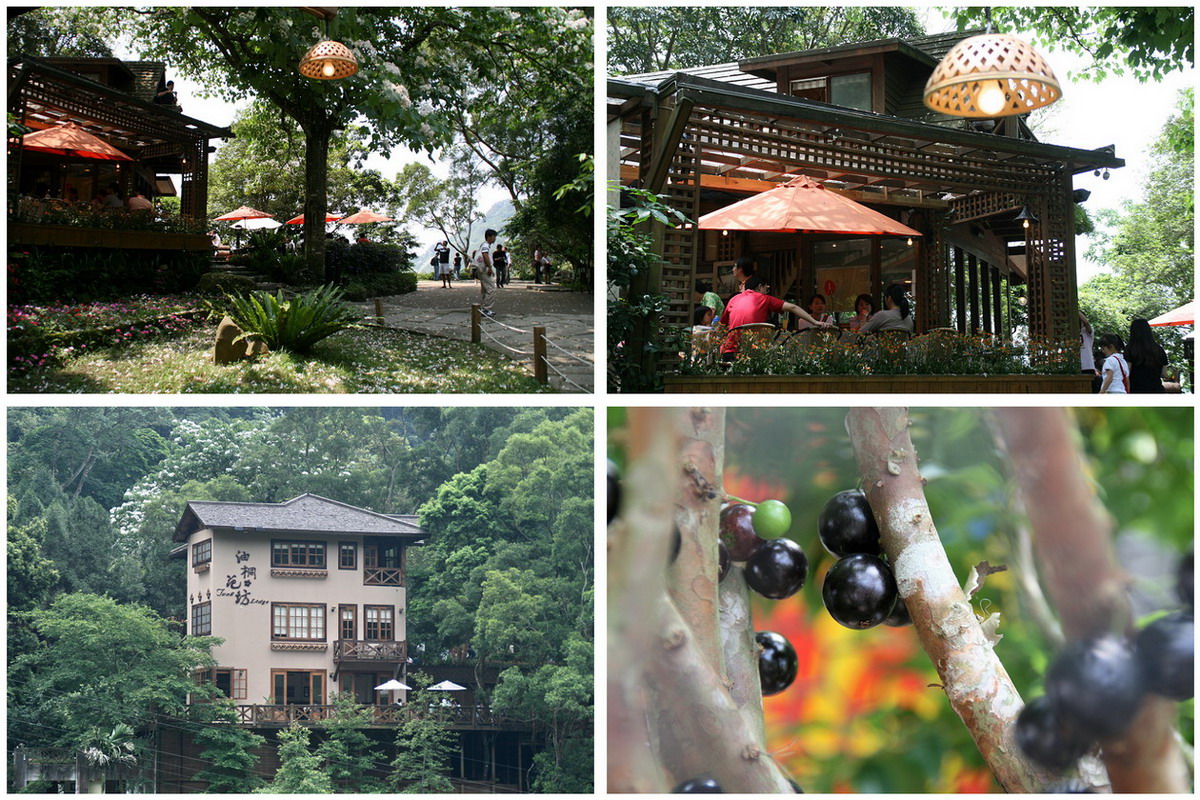 ▲油桐花坊裡只有一株油桐樹,十分地盛開。而民宿據說是重金打造的房間,收費自然也是不便宜。右下是附近所產的樹葡萄,長在樹上的葡萄,果肉的口感頗為奇特。